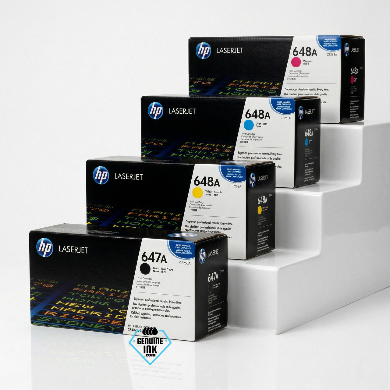Original HP CE260A, CE261A, CE262A, CE263A Set Toner Cartridges. For creating amazing printing that can take your breath away, Original HP CE260A, CE261A, CE262A, CE263A toner cartridges are precision designed components. These cartridges are designed for the HP All-in-One Printers Color LaserJet CM4540, Color LaserJet CM4540f, Color LaserJet Enterprise CM4540fskm series of printers, and for HP Laser Printers Color LaserJet CP4025dn, Color LaserJet CP4025n, Color LaserJet CP4525dn, Color LaserJet CP4525n, Color LaserJet CP4525xh series of printers.