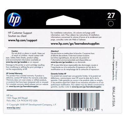 sold out HP | C9322FN C9322FN | HP 27 | Original HP Dual Pack Ink Cartridges – Black Color: Page Yield: 280 Pages MSRP: $49.68 $47.00 Out of stock