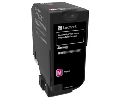 The Original Lexmark Set includes the Lexmark High-Yield Black (74C1HK0), Lexmark High-Yield Cyan (74C1HC0), Lexmark High-Yield Magenta (74C1HM0), and Lexmark High-Yield Yellow (74C1HY0) toner cartridges. Genuine Lexmark High-Yield Toner Cartridges, featuring Lexmark Unison™ unique toner formulation, provide reliable high-quality laser prints with page yields up to 20,000 pages (Black), and 12,000 pages (Color) at 5% coverage.