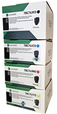 Lexmark | Lexmark 78C1U SET Lexmark Set | 78C1UC0, 78C1UK0, 78C1UM0, 78C1UY0 | Original Lexmark Ultra High-Yield Toner Cartridges – Black, Cyan, Magenta, Yellow Color: Page Yield: Black: 10,500 Pages / Color: 7,000 Pages MSRP: $940.96 $679.00 - $769.00 Choose Options