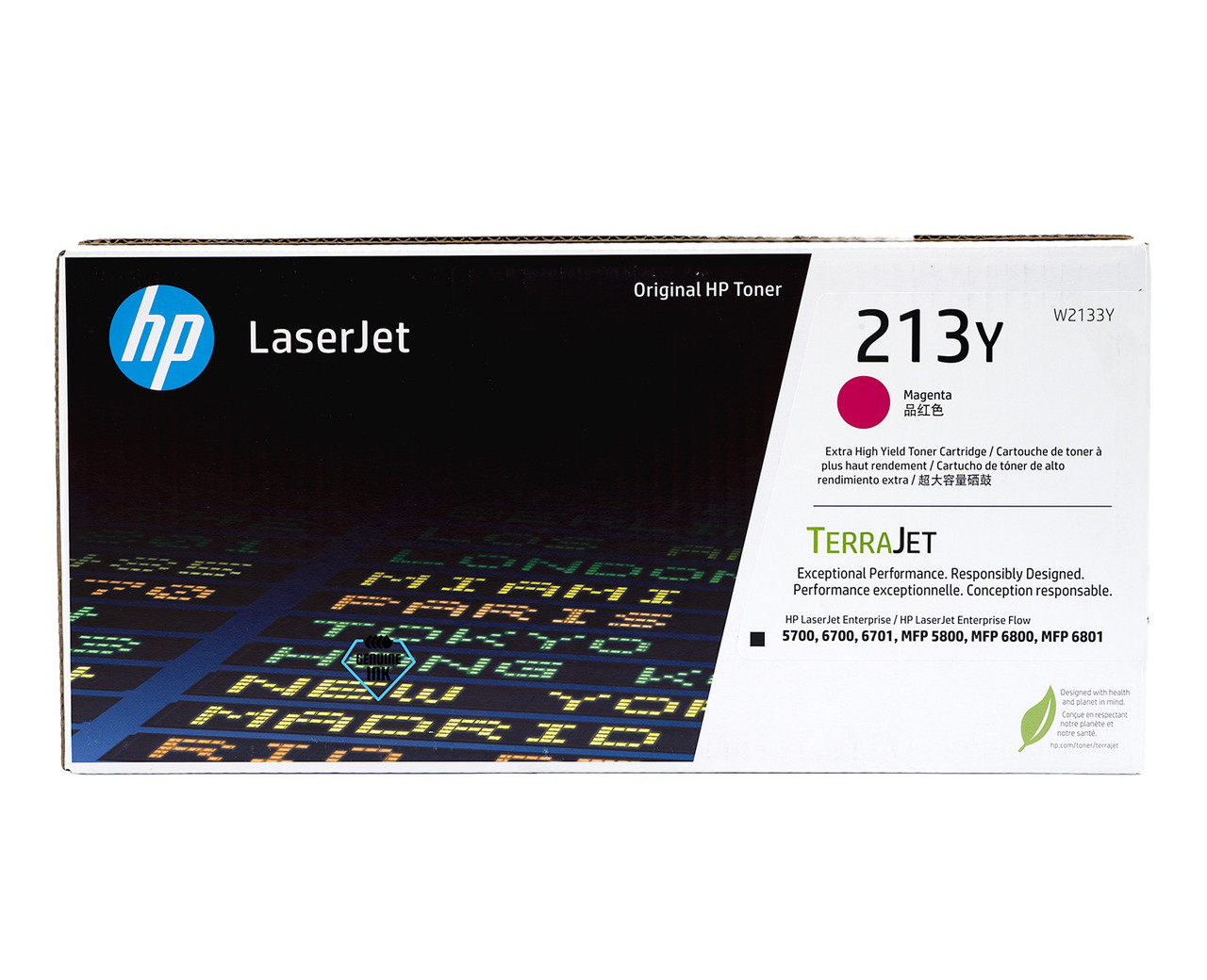 The Original HP 213Y (W2133Y) Extra High-Yield Toner Cartridge in Magenta provides reliable high-quality laser prints with page yields up to 12,000 pages.